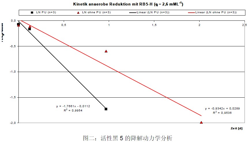 該項(xiàng)目是在厭氧+膜生物反應(yīng)器中使用LEVAPOR 生物膜技術(shù)去除印染廢水中的染料物活性黑5。