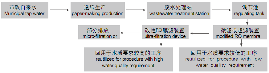 造紙工業(yè)既是水污染大戶又是用水大戶。據(jù)不完全統(tǒng)計(jì),其廢水排放量達(dá)20多億噸,占全國(guó)工業(yè)廢水排放量的11%以上,COD排放量更是多達(dá)300多萬噸,占全國(guó) COD排放量的42%,居第一位。近年來,由于水資源的匱乏、經(jīng)濟(jì)的持續(xù)增長(zhǎng),導(dǎo)致水資源價(jià)格的不斷提高以及面對(duì)嚴(yán)峻的環(huán)境污染形式,國(guó)家對(duì)環(huán)保執(zhí)法力度的進(jìn)一步加大,要求造紙企業(yè)尋求一種符合國(guó)家環(huán)保政策要求的新工藝、新技術(shù),來實(shí)現(xiàn)造紙廢水的循環(huán)利用。怡百信公司針對(duì)造紙企業(yè)的這一需求,設(shè)計(jì)研發(fā)的造紙綜合排放廢水回用系統(tǒng),通過對(duì)經(jīng)傳統(tǒng)方法處理后達(dá)標(biāo)排放的造紙綜合廢水作進(jìn)一步深度處理,并可根據(jù)客戶不同的用水要求提供不同水質(zhì)標(biāo)準(zhǔn)的回用水。該系統(tǒng)一方面能有效減少?gòu)U水排放,取得了良好的環(huán)境效益;另一方面節(jié)約大量水資源,降低生產(chǎn)成本,取得了良好的經(jīng)濟(jì)效益。
