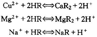 氫離子交換過程反應式如下: